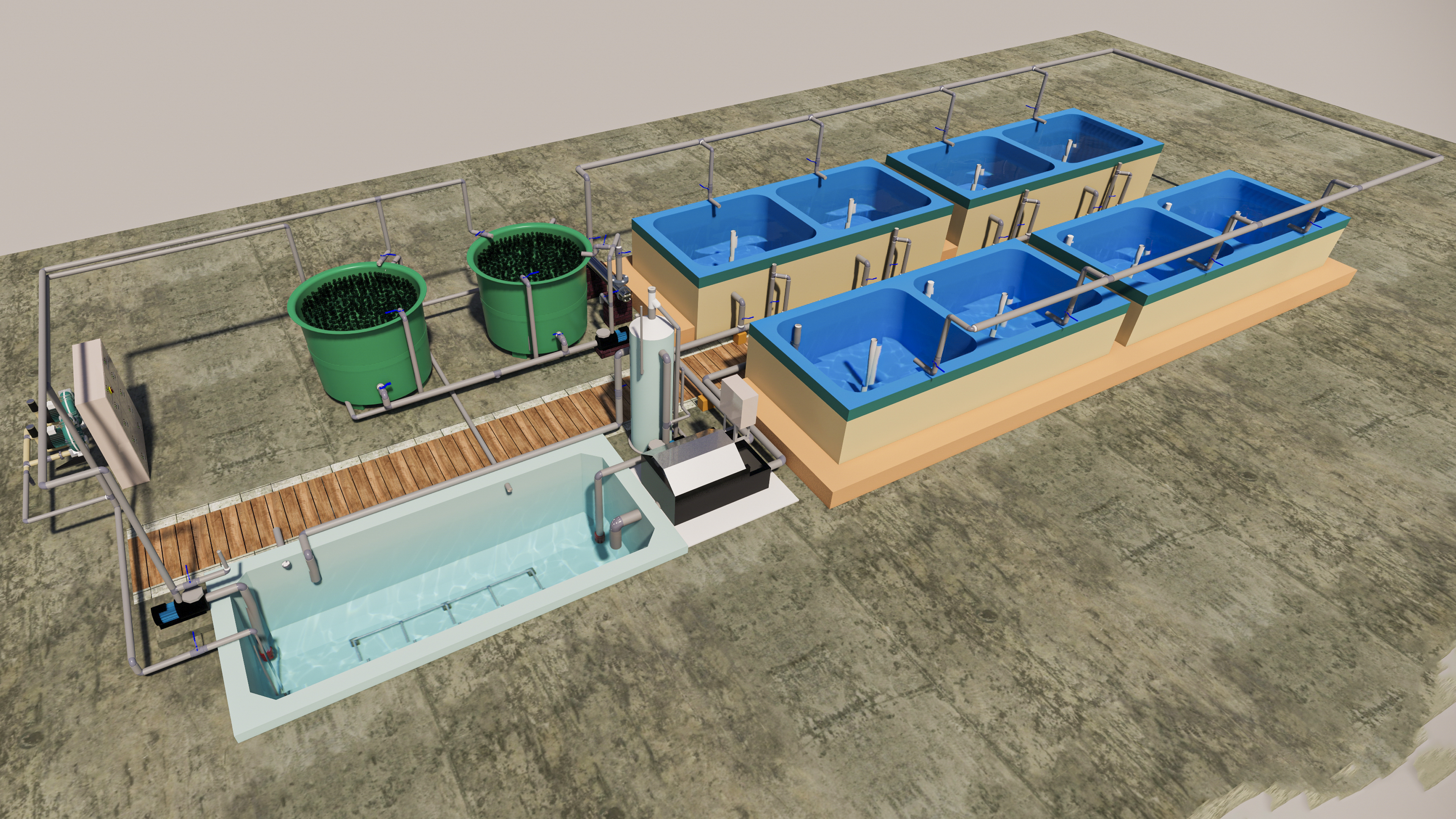 Undertake complete Solutions in implementing Advanced Aquaculture Technologies such as Raceway Systems, Recirculating Aquaculture Systems,Bio-Floc Technologies,Domestication Facilities, Inland Cage Culture Systems, Raft Culture, etc.,